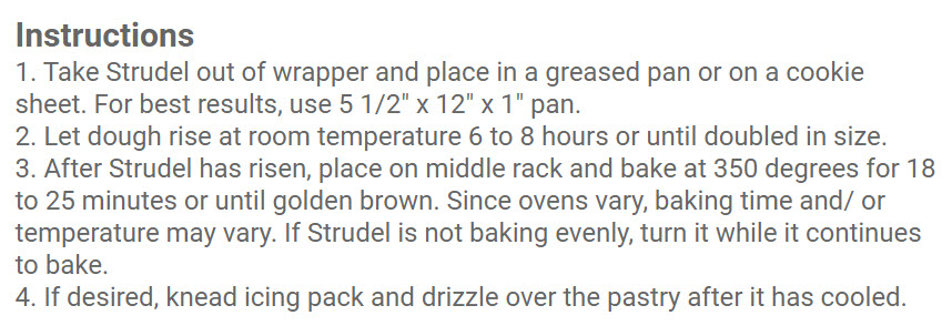 • Each strudel is 22oz