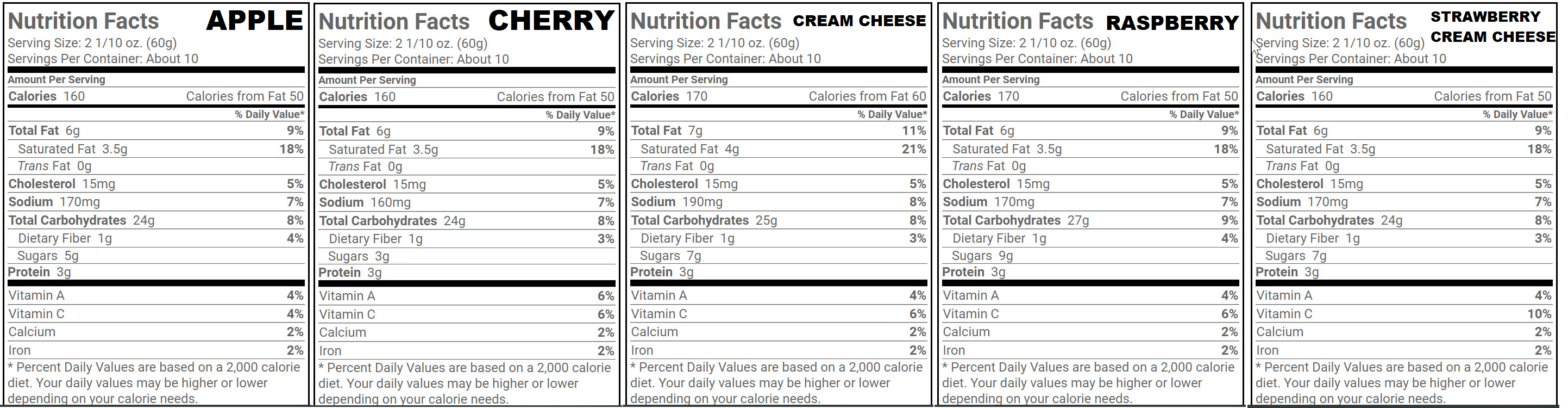 • 5 great tasting flavors: Apple, Cherry, Cream Cheese, Rasberry, & Strawberry Cream Cheese